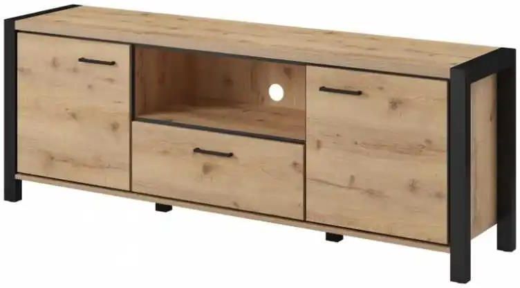 Komoda RTV Aktiv 2D1S to połączenie funkcjonalności i nowoczesnego designu. Wytrzymała, z odpornością na wilgoć, dąb Taurus, czarne nogi, dwie półki, szuflada, 180cm szerokości.