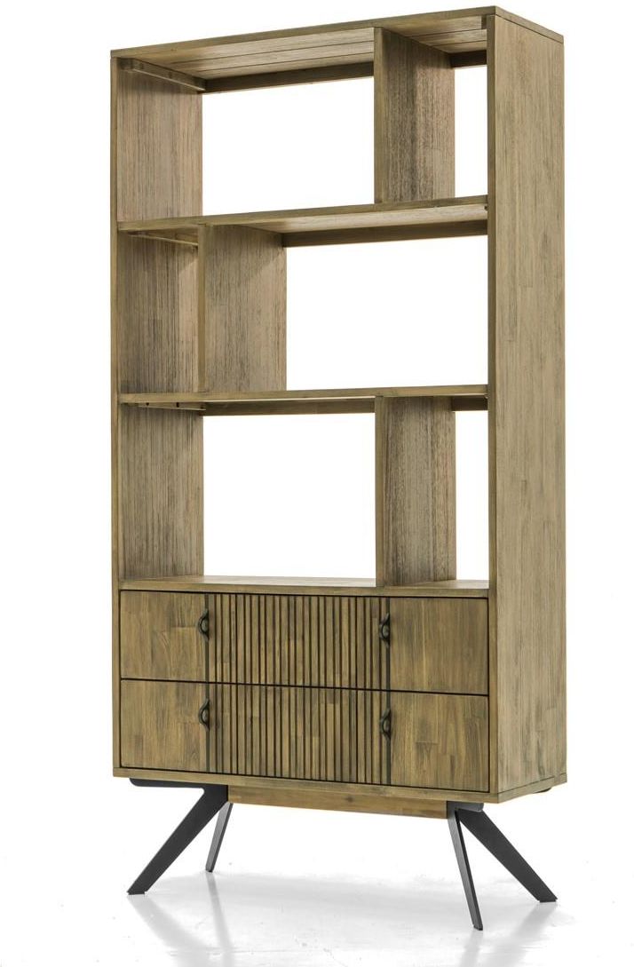 Massa L02 Regał Kolekcja Massa to niebanalne drewniane meble na metalowych nóżkach. Korpusy w kolorze brązowym pięknie komponują się z czernią nóżek. Prosta forma korpusów przełamana jest przede wszystkim strzelistymi nóżkami, oryginalnymi uchwytami oraz strukturalnym frontem nadającym całości klimatu vintage. Meble z kolekcji Massa to idealna propozycja dla osób szukających zarówno mebli najwyższej jakości jak i ponadczasowego designu. Regał o szerokości 90 cm z dwiema szufladami i sześcioma wnękami do przechowywania wykonany z drewna akacji i MDF-u w brązowej kolorystyce z metalowymi nóżkami. Styl vintage, retro i industrialny. Wymiary Szerokość (cm): 90 Wysokość (cm): 180 Głębokość (cm): 35 Dane techniczne Materiał: Drewno akacji + mdf Kolor: Brązowy Wymiary wewnętrzne wnęki: Szerokość - 23/61,5 cm, Głębokość - 35 cm, Wysokość - 35 cm Wewnętrzy wymiar za drzwiami: Szerokość - 81 cm, Głębokość - 27,5 cm, Wysokość - 14 cm Wysokość nóżek: 25 cm Waga (w kg): 55 kg Montaż: Mebel zmontowany przez producenta SzerokośćX: od 61 do 90 cm GłębokośćX: od 31 do 40 cm WysokośćX: od 161 do 190 cm
