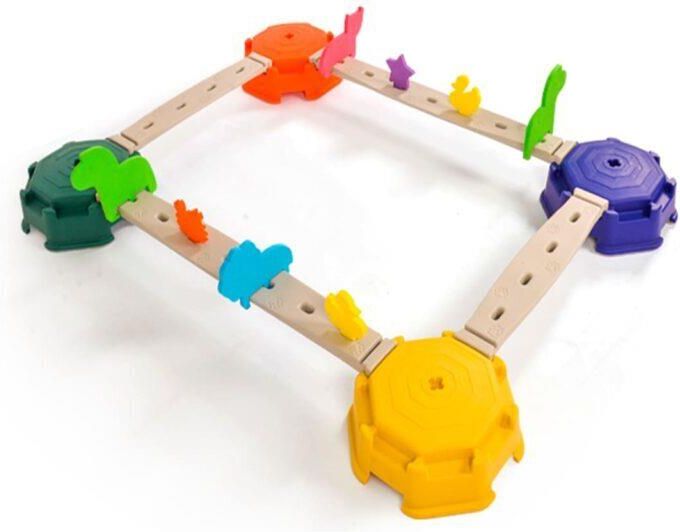Równoważnia ścieżka sensoryczna Zoo ELEMENTY ZESTAWU: pniak – 4 szt. belka długa – 2 szt. belka krótka – 2 szt. zwierzęta (figury, które dodają tematycznej zabawy) DANE TECHNICZNE: Wiek: 3 lata+ Kolor: Kolorowy Materiał: Plastik PP Wymiary: pniak 30×25 cm, belka długa 90 cm, belka krótka 56 cm …