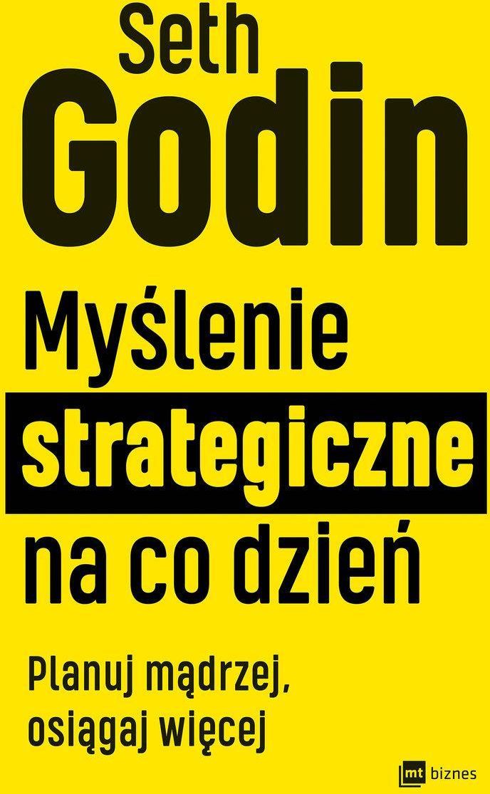 Większość ludzi nie ma strategii. Ma listę zadań, presję czasu i nadzieję, że to wystarczy. Ale strategia to coś więcej niż plan. To sposób myślenia, który pozwala dostrzec sens, zanim zaczniemy działać. Ta książka otwiera oczy. To przewodnik po myśleniu, które zmienia życie i pomaga podejmować skuteczne decyzje Seth Godin, autor bestsellera To jest marketing , powraca z kolejnym inspirującym przewodnikiem – tym razem po świecie strategii. W swoim charakterystycznym stylu – łącząc jasność myślenia, trafne metafory i ważne pytania – zachęca do zmiany perspektywy: od działania reaktywnego do działania intencjonalnego. Myślenie strategiczne na co dzień to prawie 300 krótkich, przemyślanych esejów, które można czytać niezależnie – niczym zbiór drogowskazów pomagających w budowie świadomego życia i odpowiedzialnego przywództwa. Łączy inspirację z narzędziami, dane z intuicją, a refleksję z konkretnym działaniem. Dzięki tej książce nauczysz się: myśleć systemowo, aby widzieć więcej niż inni działać z wyprzedzeniem, nie gasząc pożarów budować trwały wpływ, nie tylko chwilowe efekty tworzyć wartość, która naprawdę ma znaczenie. Dla tych, którzy chcą działać skutecznie i świadomie. Dla tych, którzy szukają nie tylko gotowych odpowiedzi, ale i lepszych pytań. Seth Godin napisał dwadzieścia dwa międzynarodowe bestsellery, które zmieniły sposób myślenia na temat pracy i sztuki i zostały przetłumaczone na 39 języków. Wśród jego przełomowych książek są m.in.: Unleashing the Ideavirus , Marketing za przyzwoleniem , Fioletowa krowa , Plemiona 2.0 , Dołek , Najmocniejsze ogniwo , The Practice oraz To jest marketing! Tworzy jeden z najpopularniejszych na świecie codziennych blogów i pięć razy wystąpił z prezentacjami na TED Talks. Jest twórcą programu altMBA, byłym wiceprezesem ds. marketingu bezpośredniego w Yahoo! i założycielem pionierskiego start-upu internetowego Yoyodyne. Więcej informacji o autorze można znaleźć na stronie sethgodin.com. Myślenie strategiczne na co dzień – Planuj mądrzej, osiągaj więcej Odkryj, jak myślenie strategiczne może zmienić Twoje życie i podejmowanie decyzji. Książka autorstwa Setha Godina to nie tylko zbiór esejów, ale prawdziwy przewodnik po skutecznym planowaniu i intencjonalnym działaniu. Dla kogo jest ta książka? Osoby pragnące poprawić swoje umiejętności planowania Liderzy i menedżerowie szukający inspiracji do efektywnego przywództwa Studenci i profesjonaliści zainteresowani rozwojem osobistym Każdy, kto chce zrozumieć, jak podejmować lepsze decyzje w życiu codziennym Co zyskasz dzięki tej publikacji? Nauczysz się myśleć strategicznie, co pozwoli Ci lepiej planować swoje działania Odkryjesz, jak łączyć dane z intuicją w podejmowaniu decyzji Znajdziesz inspirację do świadomego życia i odpowiedzialnego przywództwa Przeczytasz krótkie eseje, które można stosować jako drogowskazy w codziennym życiu Kluczowe tematy i obszary Myślenie strategiczne Planowanie i podejmowanie decyzji Intencjonalne działanie Świadome życie i przywództwo O Autorze Seth Godin to uznany autor bestsellerów, w tym książki To jest marketing . Jego prace koncentrują się na innowacjach, marketingu i strategii, a jego unikalny styl łączy jasność myślenia z trafnymi metaforami. O Wydawcy MT Biznes to wydawnictwo specjalizujące się w literaturze biznesowej i rozwoju osobistym. Oferuje książki, które inspirują do działania i pomagają w osiąganiu sukcesów w różnych dziedzinach życia. Producent/osoba odpowiedzialna za bezpieczeństwo produktuMT Biznes Sp. z o.o.ul. Jutrzenki 11802-230 Warszawahandlowy@mtbiznes.pl665055813