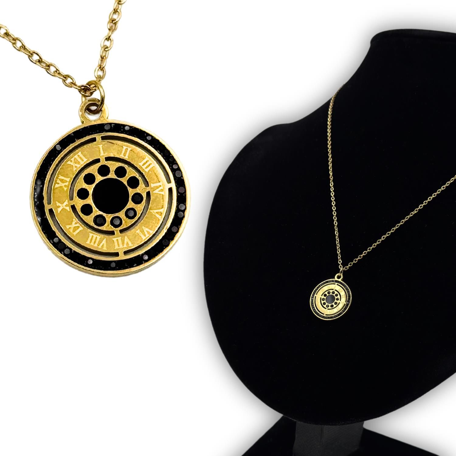 Naszyjnik z zawieszką z rzymskimi cyframi, zdobiony błyszczącymi, czarnymi cyrkoniami. Naszyjnik ma długość 41 cm i dodatkowo posiada łańcuszek przedłużający o 5 cm. Wykonany z wysokiej jakości pozłacanej stali chirurgicznej, która zapewnia trwałość i długotrwały blask. Materiał ten jest odporny na …