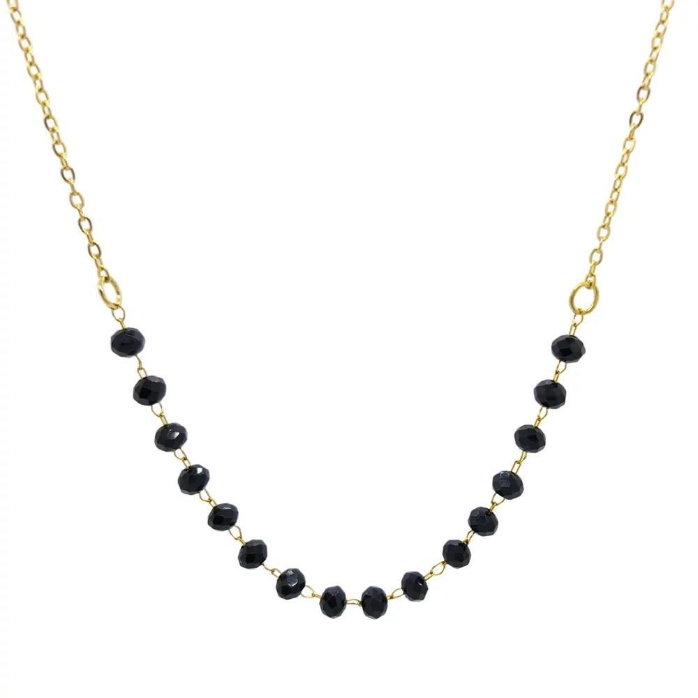 Piękny i stylowy naszyjnik, który doda Twojemu strojowi eleganckiego charakteru. Naszyjnik składa się z czarnych koralików typu beads oraz łańcuszka wykonanego z pozłacanej stali chirurgicznej. To połączenie materiałów o różnych fakturach i kolorach tworzy ciekawy i modny efekt.Ten naszyjnik to …