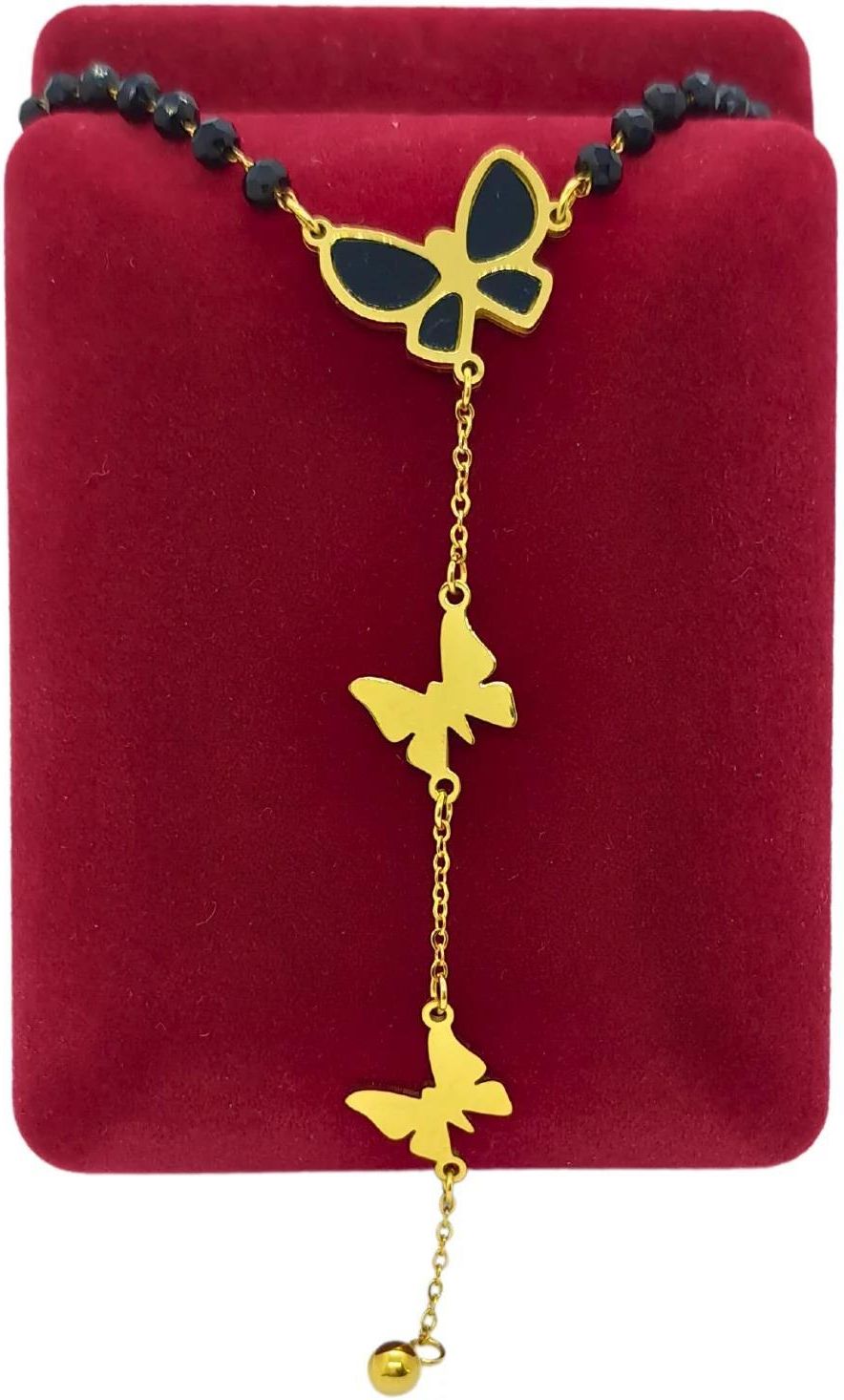 Naszyjnik Krawatka Motyle i Koraliki Beads - Pozłacana Stal Chirurgiczna Stargard