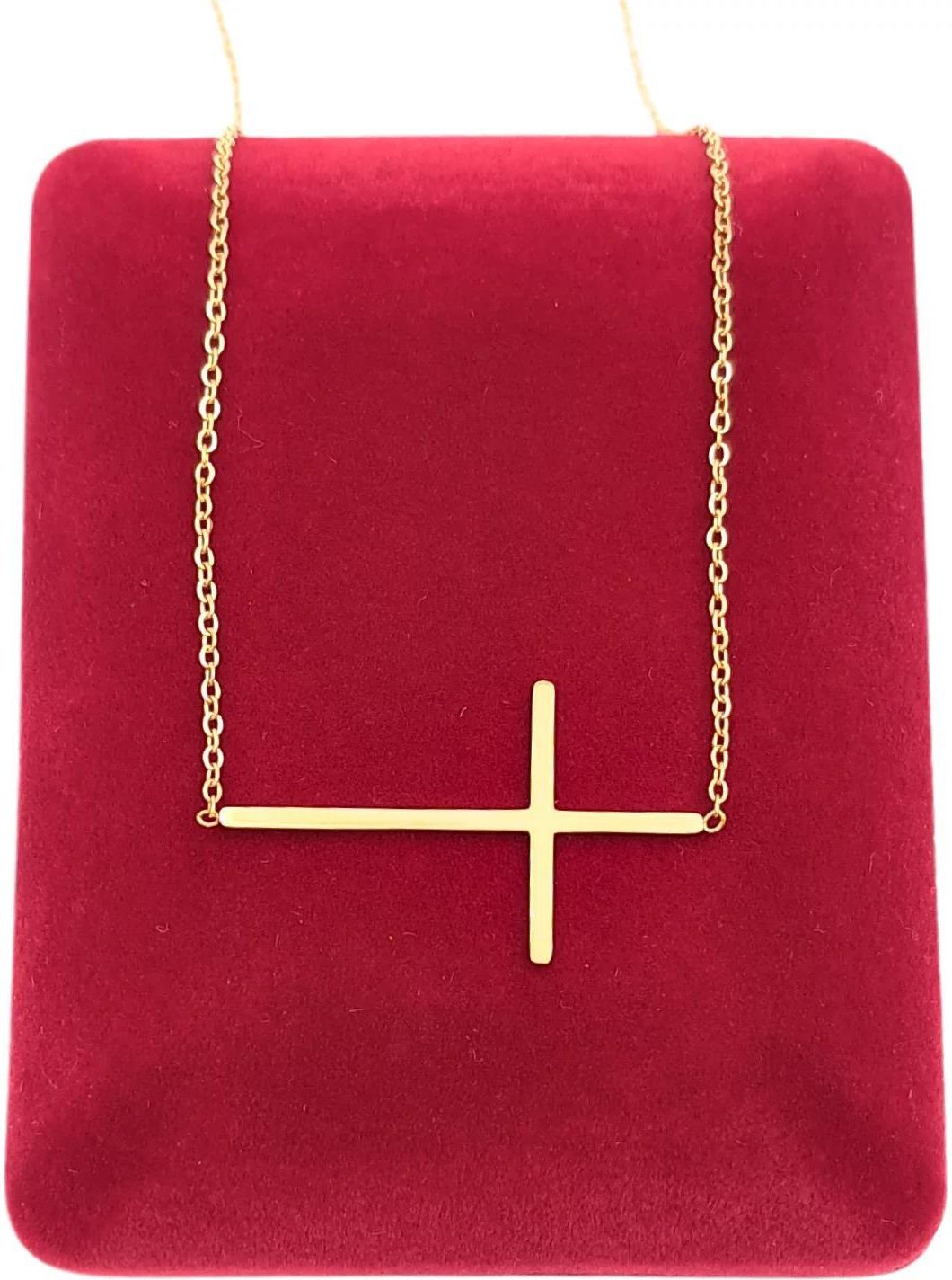 Naszyjnik Poziomy Złoty Krzyżyk - Pozłacana Stal chirurgiczna Stargard