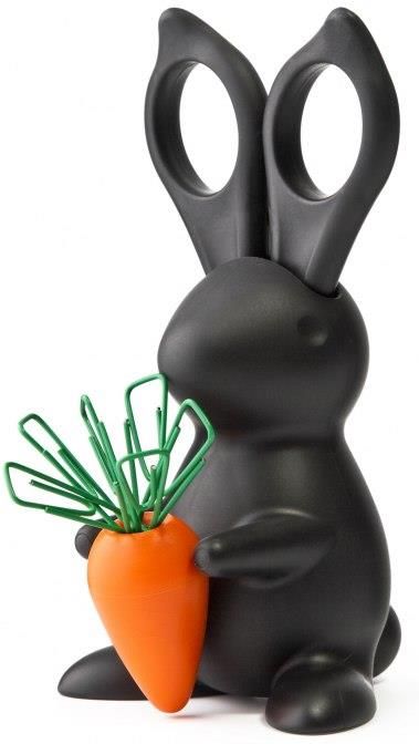 Qualy - Przybornik biurowy królik Bunny czarny Niezastąpiony organizer biurkowy. Poznaj królika Bunny - wielofunkcyjny stojak z nożyczkami i marchewką - magnesem, która pomieści tyle spinaczy, ile tylko możliwe. Bunny wniesie dużo pozytywnej energii i będzie Ci z przyjemnością towarzyszył w …