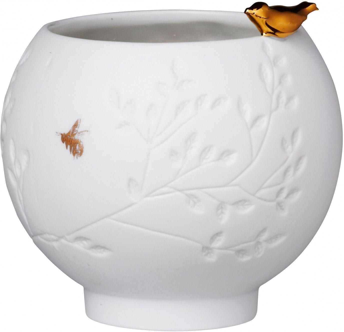 Świecznik Złoty ptak, porcelana, Raeder Raeder C12556 Wymiary: 7 cm. Ø 7.5 cm Materiał: porcelana Świecznik Złoty ptak to elegancki i wyjątkowy element dekoracyjny do Twojego wnętrza. Wykonany z porcelany, w środku szkliwiony, a na zewnątrz matowy. Jego wyjątkowy design zdobi tłoczony wzór oraz urocza figurka ptaszka, która została ręcznie pomalowana na złoto. Świecznik ma wymiary 7 cm średnicy i 7.5 cm wysokości, co sprawia, że będzie idealnie prezentował się na każdym stole lub półce. Wykonany z wysokiej jakości porcelany, zapewni długotrwałe użytkowanie. Dodaj odrobinę elegancji i uroku do swojego domu dzięki temu unikatowemu świecznikowi Złoty ptak. Marka Raeder Marka Reader to połączenie funkcjonalności i pięknej formy. Oryginalny design powstał z potrzeby serca, a ręczne wykonanie czy zdobienie czyni każdy produkt unikalnym. Nietuzinkowe przedmioty codziennego użytku ozdobią każde wnętrze, będą też sympatycznym upominkiem na rożne okazje. Naturalne materiały - takie jak porcelana, drewno, szkło czynią produkty Raeder miłymi nie tylko dla oka, ale także dla środowiska.