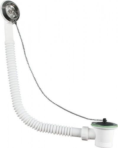 Syfon wannowy z korkiem na łańcuszku. Korek o średnicy 42 mm. Średnica odpływu 52 mm. Rozmiar gwintu 1'1/2. Marka: Sapho Gwarancja: 2 lata Materiał: Stal nierdzewna Długość: 450 mm