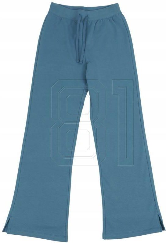 Spodnie Champion Flare W 117553 BS099 Właściwości Spodnie damskie Champion sprawdzą się na co dzień. Tkanina zadba o wentylację i trwałość. Luźny krój z szerokimi nogawkami. Niewielkie rozcięcia w dolnej, zewnętrznej części nogawek. Miękkie, polarowe wyściełanie. Elastyczny ściągacz w talii uzupełniono o sznurek do regulacji. Spodnie bez kieszeni. Materiał: 80% bawełna, 15% poliester, 5% elastan Kolor niebieski