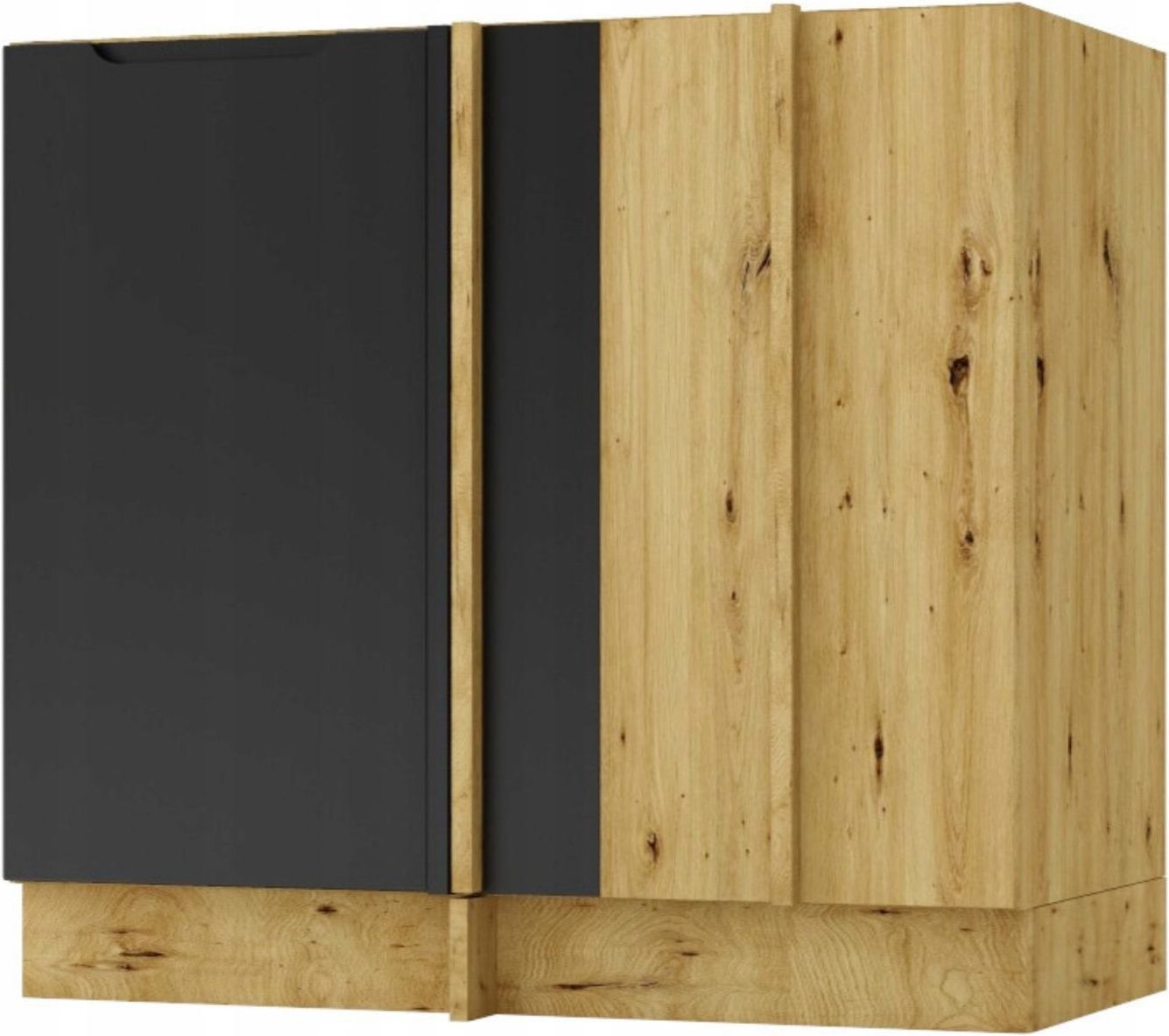 Dolna szafka kuchenna narożna DNP ISABEL kolor czarny groszek mat Dolna szafka narożna w stylu LOFT jest idealna do kuchni w stylu nowoczesnym i świetnie będzie pasować do loftowego wnętrza! Specyfikacja Kolorystyka frontu: czarny groszek mat Korpus: dąb artisan Front - materiał wykonania: płyta …