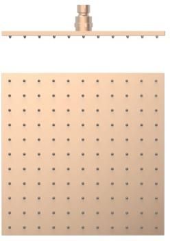TRES deszczownica 300x300 mm, 24-k matowe różowe złoto Gwarancja Producent udziela 2-letniej gwarancji. Główne cechy: - kolor: 24-k matowe różowe złoto - materiał: mosiądz - dysze antyosadowe - regulowany przegub Dane techniczne: - wymiary deszczownicy: 300x300 mm - przyłącza: G 1/2