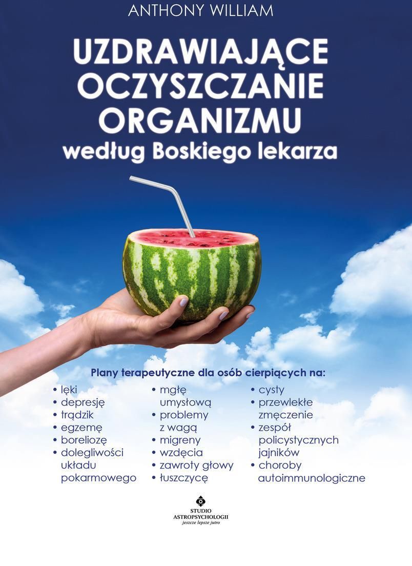 Czy wiesz co jest przyczyną takich chorób, jak np. ostry zespół przewlekłego zmęczenia, fibromialgia, reumatoidalne zapalenie stawów, Hashimoto, stwardnienie rozsiane, egzema, łuszczyca lub inne choroby autoimmunologiczne? Osoby, które na nie cierpią chodzą od lekarza do lekarza, którzy zalecają im przyjmowanie wszelkiego rodzaju olejów rybnych i probiotyków, a nawet eliminują produkty szkodliwe dla jelit, np. zawierające gluten. Mimo stosowania się do tych zaleceń nadal cierpią. W tej książce Boski lekarz powie Ci, gdzie leży prawdziwa przyczyna Twoich dolegliwości. Zaproponuje Ci kilka sposobów oczyszczania organizmu, które rozwiążą Twoje problemy zdrowotne. Boski sposób na oczyszczanie organizmu. Tytuł Uzdrawiające oczyszczanie organizmu według Boskiego lekarza. Autor Anthony William Język polski Wydawnictwo Studio Astropsychologii Tłumaczenie Juliusz Poznański ISBN 978-83-8171-582-9 Rok wydania 2021 Liczba stron 740 Format pdf, epub, mobi Spis treści Przedmowa Część I. Musimy się oczyszczać Rozdział 1. Oczyszczania z nieba rodem Rozdział 2. Przyczyny wypalenia Rozdział 3. Wezwanie do przebudzenia: co w sobie mamy Rozdział 4. Co z mikrobiomem? Rozdział 5. Post przerywany bez tajemnic Rozdział 6. Picie soków a debata wokół błonnika Rozdział 7. Żywność problematyczna Rozdział 8. Które oczyszczanie jest dla ciebie? Część II. Oczyszczanie 3:6:9 – obrońca życia Rozdział 9. Jak działa oczyszczanie 3:6:9 Rozdział 10. Oryginalne oczyszczanie 3:6:9 Rozdział 11. Uproszczone oczyszczanie 3:6:9 Rozdział 12. Zaawansowane oczyszczanie 3:6:9 Rozdział 13. Powtarzanie oczyszczania 3:6:9 Rozdział 14. Wychodzenie z oczyszczania 3:6:9 Część III. Inne rodzaje oczyszczania według Boskiego lekarza Rozdział 15. Oczyszczanie z drobnoustrojów chorobotwórczych Rozdział 16. Oczyszczanie poranne Rozdział 17. Oczyszczanie z metali ciężkich Rozdział 18. Oczyszczanie dietą jednoskładnikową Część IV. Szczegółowy przewodnik po oczyszczaniu Rozdział 19. Co robić, a czego nie robić podczas oczyszczania Rozdział 20. Zdolność organizmu do samoleczenia Rozdział 21. Warianty i zastępniki Rozdział 22. Przykładowe menu w oczyszczaniu 3:6:9 Rozdział 23. Przepisy kulinarne Część V. Wsparcie duchowe i uzdrawiające duszę Rozdział 24. Żywe słowa do „przegranych” i uwaga do krytyków Rozdział 25. Emocjonalny aspekt oczyszczania Rozdział 26. Umocnione dusze Część VI. Przyczyna i protokół Rozdział 27. Co trzeba wiedzieć o suplementach Rozdział 28. Terapie szokowe według Boskiego lekarza Rozdział 29. Prawdziwe przyczyny chorób i dolegliwości oraz dawkowanie suplementów i produktów leczniczych Podziękowania O Autorze