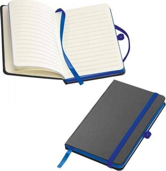 Notes A6 ROSTOCK Szary / Niebieski Kolory: Niebieski Wymiary: 9 x 14 x 1,4 Waga: 0,113 kg Kolor: Szary, Niebieski Stan: Nowy Kolorowy i elegancki notes z czarną okładką z laminatu PVC, zawiera 160 stron w linie. Swój wyjątkowy wygląd zawdzięcza kolorowym brzegom kartek, specjalnej gumce na długopis z boku oraz zakładce z tasiemki. Logotyp można umieścić na okładce.