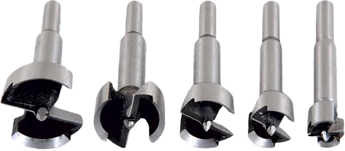 Frezy do drewna Do nawiercania otworów w naturalnym drewnie, sklejkach i płytach wiórowych, np. do zawiasów puszkowych Zestaw 5 sztuk: 15-20-25-30-35 mm