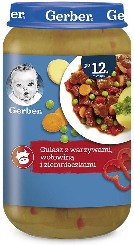 Gerber Gulasz z warzywami wołowiną i ziemniaczkami Urozmaicona kompozycja warzyw (ziemniaki, marchewka, groszek, papryka, cebula) z wołowiną. Dobry pomysł na posiłek obiadowy, który pomoże oswoić roczniaka z nowymi smakami. Warto wiedzieć Poznaj produkty Gerber Tabela Wartości odżywczych i …