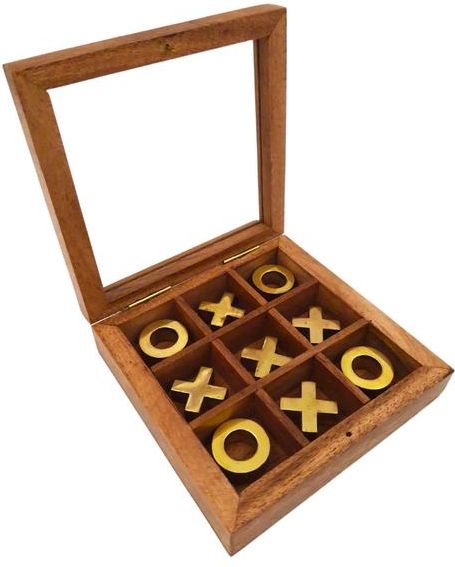 Kółko i krzyżyk w pudełku ze szklanym topem - DNU-004 Kółko i krzyżyk w drewnianym pudełku to elegancka wersja gry z ostatnich stron zeszytów. To doskonały pomysł na oryginalny prezent dla nauczyciela lub kolegi z lat młodości. Materiał: drewno, mosiądz, szkło. Wymiary pudełka: 12,5 x 12,5 x 2,5 cm.
