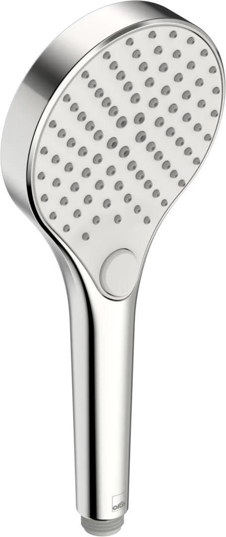 Specyfikacje: -Liczba funkcji natrysku: 3 rodzaje strumienia -Elementy natrysku: System zapobiegający osadzaniu się kamienia -Rodzaj strumienia natrysku: Normalny - Równomierny i delikatny strumień wody, Masaż - Silny strumień wody dzięki obrotowym dyszom natrysku, Deszcz - Równomierny i silny strumień wody -Kolor: Chrom -Natężenie przepływu przy 300 kPa (z regulatorem): 0.2 l/s -Wielkość przyłącza: G1/2 -Woda ciepła zasilająca: max. +65°C -Materiał: Kompozyt -Ciśnienie robocze: 50 - 500 kPa