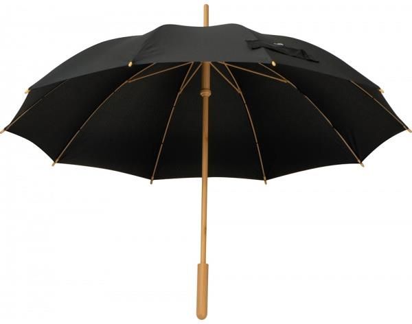 Duży parasol wykonany z poliestru (190T RPET) z bambusową rączką i stelażem z włókna szklanego.