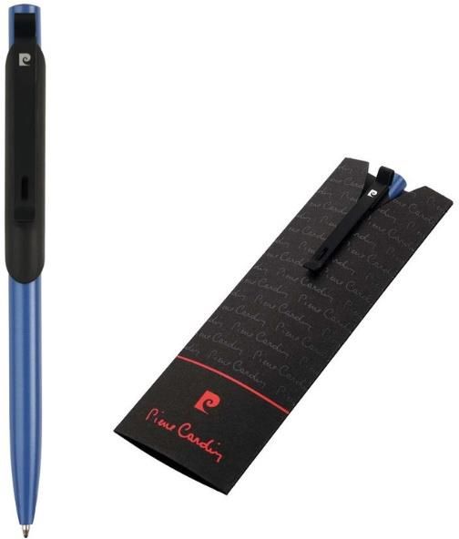 Metalowy długopis Pierre Cardin o niepowtarzalnym designie, z czarnym gumowanym elementem pod klipsem. Wyposażony w niebieski wkład z końcówką 1 mm. Długopis pakowany w eleganckie etui, posiada certyfikat autentyczności.