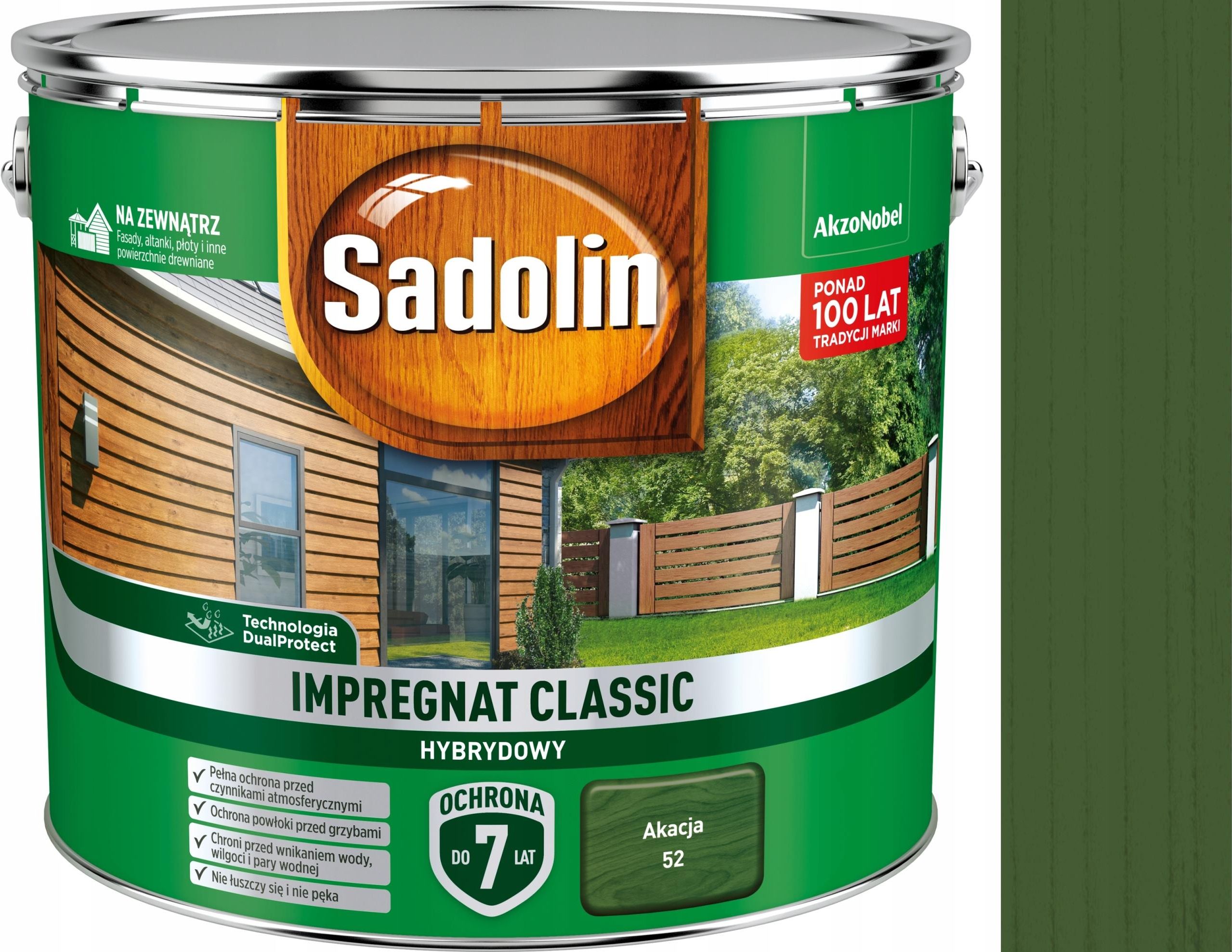 Przedmiotem aukcji sklepu "KLEKS NA ŚCIANIE" jest: SADOLOIN CALSSIC IMPREGNAT HYBRYDOWY DO DREWNA 9L KOLOR : AKACJA Sadolin Impregnat Classic hybrydowy jest nowoczesnym, głęboko penetrującym impregnatem, przeznaczonym do stosowania na zewnątrz, do ochronno-dekoracyjnego malowania drewna niemającego …