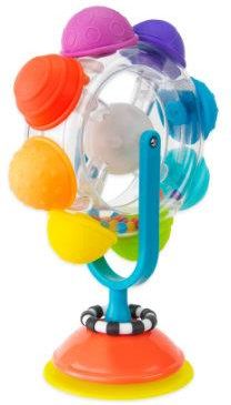 Ta karuzela dosłownie rozświetli Twojemu dziecku czas zabawy. Niezwykły kołowrotek, kiedy jest poruszany przez malucha, odwdzięcza się kolorowymi światełkami, podczas gdy koraliki kaskadowo wędrują po obręczy wewnątrz zabawki. Miękkie, kolorowe zewnętrzne wypustki tworzą efekt tęczy. Im szybciej maluch zakręci kołem, tym lepszy będzie efekt. Obracający się kołowrotek pozwala lepiej skupić wzrok. Ta zabawka 2w1, idealna zarówno do zabawy na podłodze, jak i na stoliku czy tacce, bezpiecznie mocowana za pomocą przyssawki. Jakie są korzyści dla dziecka z zabawy sensorycznym kołowrotkiem? To zabawka 2w1, więc maluch może się nią bawić zarówno na podłodze, jak i siedząc przy stoliku lub w krzesełku do karmienia. Uczy nowej umiejętności, odpowiedniej dla dziecka w wieku powyżej 6 miesięcy - została zaprojektowana tak, aby można było w nią uderzać, by wprawić ją w ruch Zachęca dziecko do energicznego działania bez przewracania, wzmacniając koordynację ręka-oko. Wirujące kształty umożliwiają lepsze skupienie wzroku na jednym elemencie. Światełko i różnokolorowe kształty stymulują zmysł wzroku dziecka i uczą je rozpoznawania kolorów. Parametry techniczne: Wiek: 6 m+ Przybliżone wymiary: 8 x 13 x 20 cm (długość x szerokość x wysokość) Waga: 180 g Materiał: elastomer termoplastyczny, styren butadienowo-akrylonitrylowy (nieprzezroczysty i przezroczysty), polipropylen, polichlorek winylu, stal nierdzewna (śruby) Ostrzeżenia (!) Przed podaniem dziecku usunąć opakowania i elementy mocujące. Zużyte baterie należy natychmiast zutylizować. Nowe i zużyte baterie należy przechowywać z dala od dzieci. Jeśli uważasz, że baterie mogły zostać połknięte lub umieszczone w jakiejkolwiek części ciała, natychmiast zasięgnij porady lekarza. Wskazówki dotyczące pielęgnacji: Przed pierwszym użyciem dokładnie wyczyścić. Przetrzeć miękką, wilgotną szmatką. Nie zanurzać w wodzie. Wysuszyć na powietrzu.