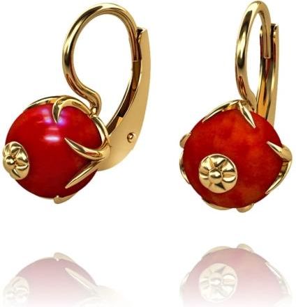 Norbisrebro Złote Kolczyki z Naturalnym Koralem na Zatrzasku - pr. 585 Stary Sącz