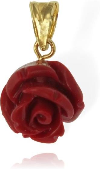 Norbisrebro Złoty Wisiorek Czerwona Róża Koral - Próba 585 Stary Sącz