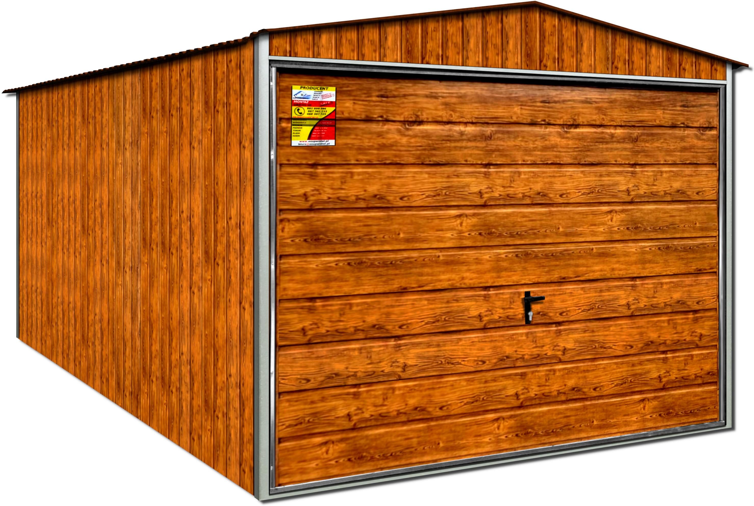 Premiumstal Garaż Blaszany 3X9 Lux Drewnopodobny Dwuspadowy Dach Brama Uchylna (1792) Stary Sącz