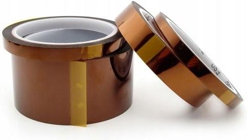 Taśma kaptonowa samoprzylepna 8 mm, TEL000015 Zdjęcie poglądowe Właściwości Szerokość taśmy: 8 mm Długość taśmy na rolce: ok. 33 m Grubość taśmy: 25 um Taśma kaptonowa to samoprzylepna, odporna na wysokie temperatury i chemikalia taśma ochronna do zabezpieczania wrażliwych elementów (złącza, układy scalone, gniazda) podczas lutowania na fali lub gorącym powietrzem. Idealna w serwisie telefonów komórkowych, laptopów innych urządzeń mobilnych, gdzie można ja zabezpieczyć sąsiednie elementy i układy przed przegraniem lub innym uszkodzeniem podczas lutowania gorącym powietrzem. Taśma nie pozostawia śladów kleju po usunięciu. Taśmy kaptonowe można również stosować podczas druku 3D. Taśmą oklejamy blat roboczy drukarki, aby zapobiec przesuwaniu się drukowanego obiektu. Po oderwaniu taśmy, stół pozostaje czysty, bez śladów kleju czy resztek filamentu.