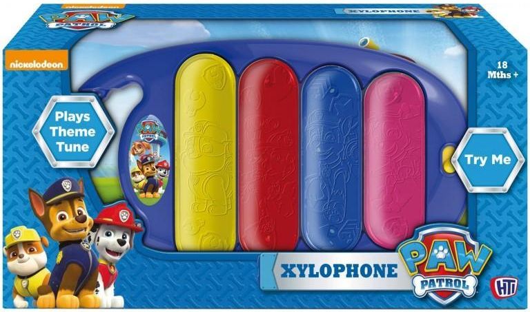 Potrząśnij ksylofonem, a usłyszysz muzykę z serialu Psi Patrol. Ksylofon ma podświetlane klawisze. Ma przełącznik, więc gra realistyczne dźwięki ksylofonu lub dźwięki postaci z serialu. ksylofon z motywem bajki Psi Patro wykonane z dobrej jakości materiału posiada podświetlane klawisze wygrywa …