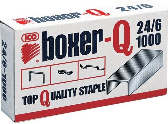 Zszywki Boxer 24/6, srebrne, 1000 sztuk. Zszywki Boxer wykonane zostały z wysokiej jakości stali, pokrytej dodatkowo powłoką galwaniczną chroniącą przed korozją. Gwarantują wygodne zszywanie dokumentów dzięki twardości i wytrzymałości. W ofercie zszywki dostępne są w różnych rozmiarach.