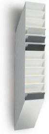 Durable Flexiboxx 12 A4 Zestaw dwunastu pojemników na dokumenty 1 zestaw, kolor biały. Produkt Nowy! Opakowanie producenta. Durable Flexiboxx 12 A4 Zestaw dwunastu pojemników na dokumenty Charakterystyka produktu Flexiboxx 12 A4 pionowy biały: Zestaw dwunastu pojemników na dokumenty Zestaw zawiera: 12 pojemników, 1 osłonę przednią Kolor: biały Format: A4 Układ: pionowy Głębokość (pojemność pojedynczego pojemnika): 24 mm Wymiary zestawu (po zamontowaniu):240x1115x135 5mm (szer. x wys. x gł) Informacje o tym produkcie Naścienny zestaw 12 pojemników na dokumenty o formacie nieprzekraczającym A4. Dokumenty są umieszczane w pojemnikach w układzie pionowym. Zestaw składa się z 12 pojemników na dokumenty o głębokości 24 mm (każdy). Zestaw dwunastu pojemników na dokumenty w kolorze białym- do montażu na ścianie. Wymiary: 240 x 1115 x 135 mm (szer. x wys. x głęb.). Możliwość rozbudowy za pomocą modułów Flexiboxx A4 Extension. Maksymalne obciążenie- do 6 kg. Pojemnik na ulotki, gazety i katalogi Flexiboxx sprawdza się doskonale w wielu miejscach użyteczności publicznej, takich jak: recepcja, poczekalnia, biuro oraz targi. Pojemnik na dokumenty na ścianę idealny do informacji w recepcji, w salach wystawowych, w poczekalniach, targach i zakładach pracy. Każdy zestaw dodatkowo zawiera 1 przednią osłonę oraz 1 komplet akcesoriów do montażu: 2 kołki i 2 śruby. Poszczególne pojemniki na dokumenty z zestawów Flexiboxx można odczepiać od całości i pojedynczo wieszać na ścianie. Do każdego dodatkowego kompletu bedzie jednak potrzebna 1 przednia osłona. Pojemniki na dokumenty można rozbudować do nośności ok. 6 kg Poszczególne zestawy Flexiboxx różnią się między sobą: ilością pojemników (6 lub 12), kolorem (czarny, przezroczysty, biały) oraz układem (pionowy lub poziomy). Marka DURABLE już od ponad osiemdziesięciu lat stanowi synonim wysokiej jakości produktów służących do przechowywania dokumentów, informacji i prezentacji (np. identyfikatory, ramki magnetyczne Duraframe, tabliczki przydrzwiowe, prezentery i stojaki informacyjne, uchwyty na tablety), organizacji biura (systemy porządkowania i archiwizacji, produkty czyszczące i samoprzylepne, pojemniki na ulotki, Flexiplus, Flexiboxx, pojemniki Varicolor, organizery, wizytowniki iinne artykuły biurowe), wyposażenie zakładowe (kosze na śmieci, skrzynki na klucze, apteczki, stojaki na parasole, meble biurowe, oznaczenia magazynowe, kieszenie magazynowe) i wiele innych. Nadrzędnym celem niemieckiej firmy DURABLE są rozwiązania, które cechują się wysoką jakości, ekologią, a także podnoszą komfort, bezpieczeństwo i ergonomię pracy. Zestaw pojemników na dokumenty i ulotki Flexiboxx 12 A4 pionowy biały od marki Durable. Pojemniki Flexiplus idealnie sprawdzą się do sortowania, segregacji dokumentów w biurze, recepcji, w salach wystawowych, w poczekalniach i zakładach pracy.