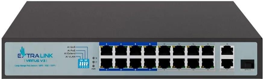 • 2x RJ-45, 1x SFP, 16x PoE/PoE+