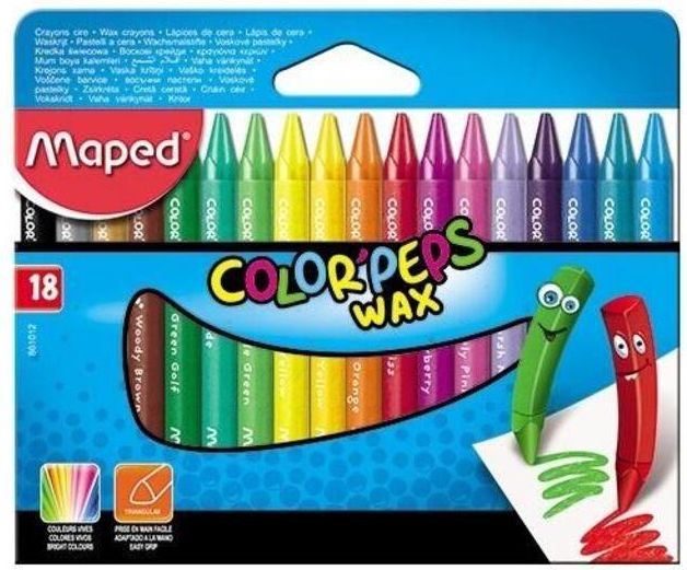 Kredki świecowe Colorpeps - 18 kolorów Oferowane kredki świecowe Colorpeps od Maped to produkt, który z pewnością przypadnie do gustu małym artystom. Nie tylko dlatego, że pozwala na tworzenie żywych, intensywnych rysunków, ale również ze względu na praktyczne rozwiązania, które je wyróżniają.Trójkątny kształt kredek sprawia, że są one wygodne w użyciu, a przy tym chronią przed zmęczeniem dłoni podczas długotrwałego rysowania. Ostre kąty także ułatwiają kontrolę nad narzędziem, co jest szczególnie ważne dla młodszych dzieci.Unikalną cechą tych kredek jest ich papierowa otulina. Dzięki niej ręce podczas rysowania pozostają czyste, co jest dodatkowym atutem dla rodziców. Wysoką jakość kredek Colorpeps gwarantuje użyty do ich produkcji wosk. Zapewnia on miękkie rysowanie i wyraźne pokrycie powierzchni, a co najważniejsze - sprawia, że kolory są niezwykle żywe i intensywne.Nie można zapomnieć o tym, że kredki świecowe Colorpeps są nietoksyczne. Wyprodukowane zostały zgodnie ze wszystkimi regulacjami dotyczącymi produktów przeznaczonych dla dzieci. W oferowanym zestawie znajduje się 18 kolorów, które pozwolą małym artystom na pełne wyrażenie swojej kreatywności. EAN: 3154148610120