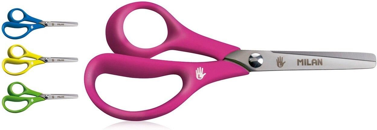 Nożyczki szkolne z ostrzem ze stali nierdzewnej z zaokrągloną końcówką. Wyprofilowane specjalnie dla osób leworęcznych. długość 14,4 cm plastikowa rączka idealne do użytku szkolnego dostępne w 3 kolorach: niebieskim, żółtym, zielonym i różowym oryginalny produkt stworzony przez własny dział badawczo-rozwojowy MILAN rozmiar nożyczek: 14,4 x 6,5 x 1,6 cm. MIX KOLORÓW! Prosimy o informację w komentarzu do zamówienia o wybranym kolorze produktu. W przypadku braku wybranego koloru wysyłamy kolor losowy.