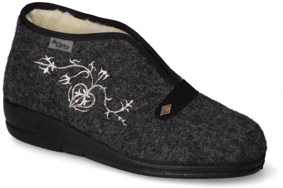 Wygodne kapcie marki Dr Orto: - cholewka wykonana jest z wysokiej jakości filcu - ocieplane wnętrze butów, które łącznie z wkładką zostało ocieplone owczą wełną - technologia SILBER w oparciu o jony srebra : * posiada właściwości antybakteryjne i przeciwgrzybicze * neutralizuje nieprzyjemny zapach * ma właściwości antyalergiczne * absorbuje wilgoć, zapewniając jednocześnie optymalną ochronę stóp - antypoślizgowa podeszwa o wys. 2,5 cm - poszerzona tęgość obuwia oraz szeroki i wysoki czubek pozwala na swobodne ułożenie palców - polecane dla osób starszych Linia dr Orto marki Befado posiada:- Złoty medal - Rekomendacja Polskiego Stowarzyszenia Diabetyków - certyfikat "Obuwie na stopy wrażliwe" - certyfikat "Obuwie dla diabetyków (profilaktyczne)".