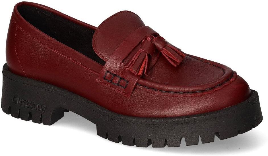 Wyjątkowe mokasyny znanej marki CheBello:- cholewka wykonana została ze skóry naturalnej licowej - wnętrze pokryte zostało materiałem tekstylnym aby zapewnić komfort podczas użytkowania - wkładka wewnętrzna została wykonana ze skóry naturalnej - obcas o wysokości 4 cm zapewnia stabilizację - bordowy kolor oraz modny fason tworzą efekt zachwycający efekt!