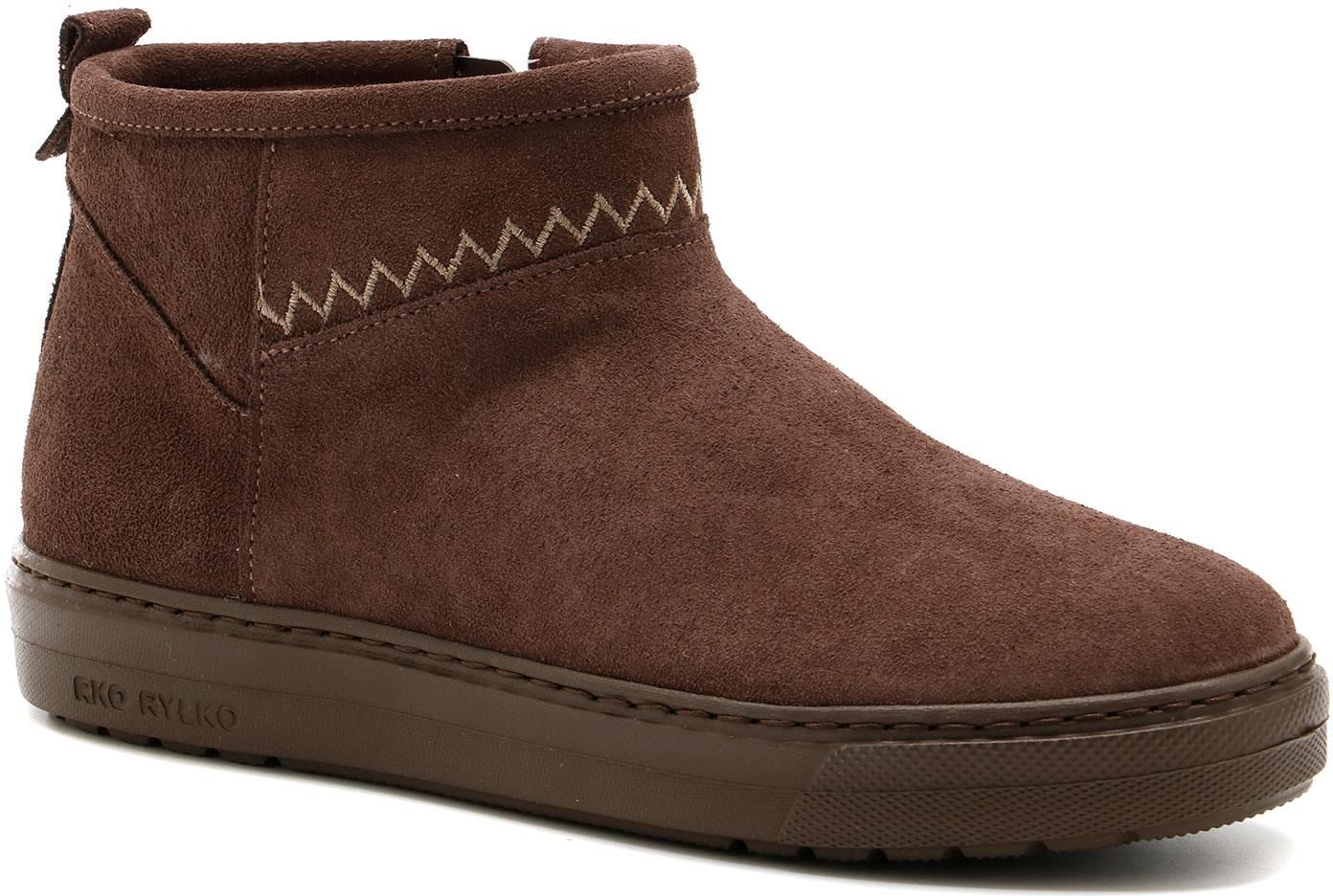 Śniegowce Ryłko to idealne rozwiązanie na zimowe dni, łączące elegancję z funkcjonalnością. Wykonane z najwyższej jakości naturalnej skóry, te buty oferują trwałość i styl, który doskonale sprawdzi się w zimowej garderobie. Ich głęboki brązowy kolor dodaje im klasycznego charakteru, a uniwersalny design pasuje do różnych stylizacji.Wnętrze śniegowców jest starannie wyściełane, zapewniając wyjątkowy komfort noszenia. Ocieplana wkładka dodatkowo podnosi wygodę, oferując ciepło i ochronę przed zimnem, co jest niezbędne podczas mroźnych dni. Dzięki temu Twoje stopy pozostaną przyjemnie ciepłe i suche, nawet w najtrudniejszych warunkach pogodowych.Design śniegowców Ryłko łączy nowoczesność z klasyką. Ich ergonomiczny kształt oraz solidna podeszwa gwarantują stabilność i bezpieczeństwo na śliskich nawierzchniach. Dodatkowe detale, takie jak ozdobne szwy, dodają butom unikalnego stylu i elegancji.Śniegowce Ryłko to inwestycja w komfort i styl, idealna dla osób, które cenią sobie jakość i modny wygląd nawet zimą. Dzięki precyzyjnemu wykonaniu i użyciu najlepszych materiałów, te buty zapewnią Ci ciepło i elegancję przez wiele sezonów.