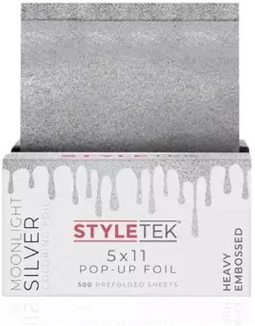 Styletek Aluminiowa Folia fryzjerska ryflowana cięta KOLOROWA 500 szt SILVER Ref. 6115-MLS Styletek Aluminiowa Folia fryzjerska ryflowana cięta KOLOROWA 500 szt SILVER Innowacyjna folia do koloryzacji włosów StyleTek Heavy Texture w paskach stworzona z myślą o profesjonalnych salonach fryzjerskich. rozmiar folii 12,7 x 27,9cm, opakowanie zawiera 500 szt. STYLETEK Aluminiowa folia fryzjerska RYFLOWANA MOCNA do koloryzacji włosów NAJWYŻSZA JAKOŚĆ Najlepsza na świecie folia do koloryzacji włosów. Bardzo trwałe! A ponieważ nasza folia aluminiowa jest tłoczona, nie zsuwa się z włosów. ŁATWE W UŻYCIU - Dostarczany w osobnym pudełku z dozownikiem, który zawiera ostrze, umożliwiające cięcie folii w dowolnym miejscu. Pudełko jest wykonane solidne, dzięki czemu na pewno się nie przesunie. WYGODA - Zapewnia wygodę przycinania dowolnej długości. Sprawdza się to doskonale u klientek z długimi włosami, pozwalając na dobranie długiego kawałka folii. 91,5m długości. STWORZONE DLA KOLORYSTÓW - Folie STYLETEK zostały stworzony przez kolorystów, dla kolorystów, nie dla żywności. DOBRZE WYKONANE - Pudełko jest wykonane z mocnego, wytrzymałego kartonu, który nie pozwoli na uszkodzenie folii. WAGA PIÓRKOWA- Folia tłoczona jest lżejsza od klasycznej gładkiej, grawitacja jej nie straszna ! PLASTYCZNOŚĆ- Nasze folie charakteryzują się większą plastycznością. WIĘKSZA KONTROLA- Dobierając różne kolory folii, otrzymujemy pełną kontrolę nad wykonywaną usługą koloryzacji, znając dzięki tej metodzie dokładną kolejność nakładania mieszanek. SZYBSZA PRACA- dzięki ciętej folii od razu przystępujemy do pracy, nie tracąc czasu na jej cięcie.
