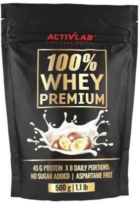Activlab whey premium ciasteczko z mleczną czekoladą POJEMNOŚĆ: 500g ZASTOSOWANIE: 100% WHEY PREMIUM to odżywka wysokobiałkowa bazująca na koncentracie białka serwatkowego, który jest bogatym źródłem aminokwasów ezogennych, w tym BCAA. Każda porcja produktu dostarcza pełnowartościowych protein, które przyczyniają się do zachowania lub zwiększenia masy mięśniowej. ZALECANA PORCJA DO SPOŻYCIA: porcję produktu 30 g (1,5 miarki) rozpuścić w 200 ml wody lub mleka. Stosować 1 - 2 razy dziennie, w zależności od indywidualnego zaptrzebowania na białko. SKŁAD: Koncentrat białka serwatkowego (z mleka), kakao 2,25%2,5,10, masło kakaowe w proszku 2,25%2,5,10, mleczko kokosowe w proszku 2%6, kakao 1,5%1,8, 1%4,6, masło kakaowe w proszku 1,5%8, 1%6, wiórki kokosowe6, aromaty, zagęszczony sok pomarańczowy w proszku 0,7%9, wanilia sproszkowana 0,1%12, zagęszczony sok truskawkowy w proszku 0,1%11, regulator kwasowości - kwas cytrynowy9,10,11, barwniki: karmin11, karoteny3,7,9, karmel amoniakalno-siarczynowy1,3,4,7, substancja zagęszczająca - guma ksantanowa, cynamon3, substancje słodzące: sukraloza i acesulfam K, sól2,5,8. Smaki: 1- baton mleczny, 2 - ciasteczko z mleczną czekoladą, 3 - cynamon, 4 - czekoladowy, 5 - karmel z czekoladą, 6 - kokos z czekoladą, 7 - krówka, 8 - masło orzechowe z czekoladą, 9 - sernik z pomarańczą, 10 - torcik z wiśnią, 11 - truskawkowy, 12 - waniliowy.