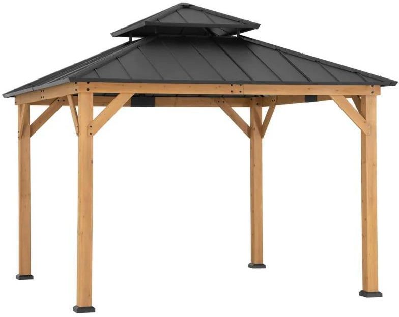 Altana ogrodowa 3,3x3,3m pawilon drewniana antracyt Sunjoy Stwórz Swoje miejsce pod gołym niebem, swoją oazę w środku swojego ogrodu. Altana 330 x 330 cm firmy Sunjoy pomoże Ci stworzyć miejsce w którym poczujesz się jak u siebie. Zachowaj osłonę przed słońcem pod dwupoziomowym, wentylowanym dachem …