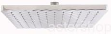 Głowica prysznicowa z przegubem obrotowym kolor chrom materiał: plastik kształt kwadratu kwadrat o wymiarach 200 x 200 mm średnica gwintu przyłączeniowego 1/2 dysze z funkcją odkamieniania - kamień można łatwo usunąć z dysz poprzez ich umycie