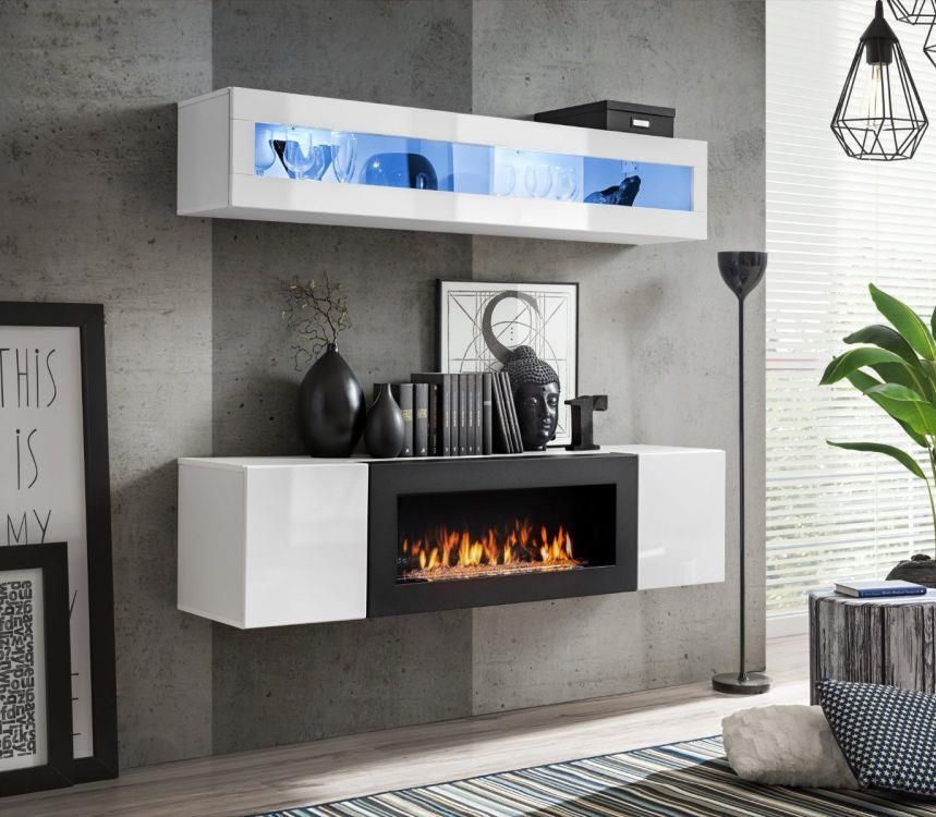 Nowoczesna meblościanka FLY N2 optycznie rozjaśni wnętrze, i ociepli je wbudowanym biokominkiem.