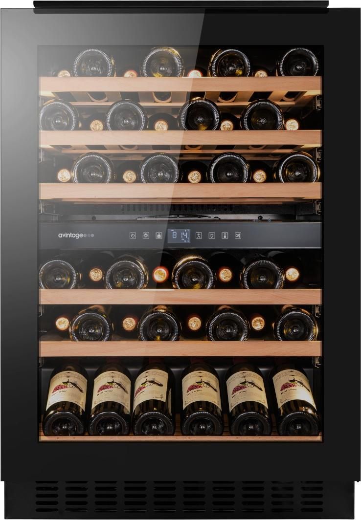 AVU61D88 winiarka dwustrefowa do zabudowy pod blatem. UWAGA: minimalna wysokość winiarki AVU61D88 to 88 cm z możliwością regulacji do 96 cm. Wysokość drzwi winiarki AVU61D88 wynosi 780 mm (w winiarkach o standardzie 82-87 cm wysokość drzwi to 716 mm). Wymiary (cm): wysokość: 88-95 szerokość: 59,5 głębokość: 57,5 Dane techniczne Uwaga: Staramy się, aby wszelkie przedstawione dane techniczne i zdjęcia były jak najbardziej aktualne. Mogą pojawić się rozbieżności pomiędzy zdjęciami i opisem a faktycznym urządzeniem. Opisy produktów pochodzą ze strony producenta i są aktualne w dniu wprowadzenia do sprzedaży, ale mogą ulec zmianie bez wcześniejszego powiadomienia. Model: AVU61D88 Rodzaj urządzenia: do zabudowy Przeznaczenie: serwowanie Maksymalna liczba butelek (0,75l): 46 Strefy temperatur: 2 Zakres regulacji temperatury: 5 - 12 °C / 12 - 20 °C Wyświetlacz cyfrowy temperatury: tak Oświetlenie wewnętrzne: LED Liczba półek: 5 drewnianych + 1 półka do prezentacji Wysuwane półki: tak Wymiary - wysokość (cm): 88 (+9,5 cm) Wymiary - szerokość (cm): 59,5 Wymiary - głębokość (cm): 57,5 Drzwi: szkło Rama drzwi: czarna Zmiana kierunku otwierania drzwi: tak Rodzaj uchwytu: ukryty na górnej ramie drzwi Regulowane nóżki: tak Kółka z tyłu: nie Obudowa: czarna Zamek: nie System antywibracyjny: tak Alarm: tak Cyfrowy wyświetlacz wilgotności: nie Filtr węglowy: tak System zimowy: nie Chłodzenie: R600a Waga netto: 56 kg Pobór prądu: 102 kWh / rok Klasa energetyczna: F Klasa klimatyczna: ST Poziom hałasu: 37 dB Kod EAN: 3595320107975