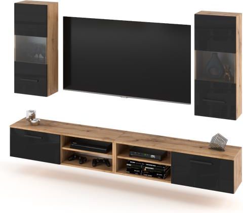 Blanco Meblościanka 4el. 240×40×120cm Blanka Czarny Połysk Korpus Wotan Stepnica