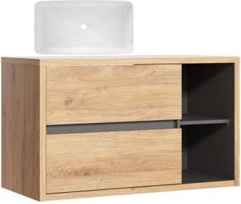 Comad Szafka Z Białą Umywalką Nablatową 100X46X60Cm Dąb Grafit Devon 20763 Stepnica