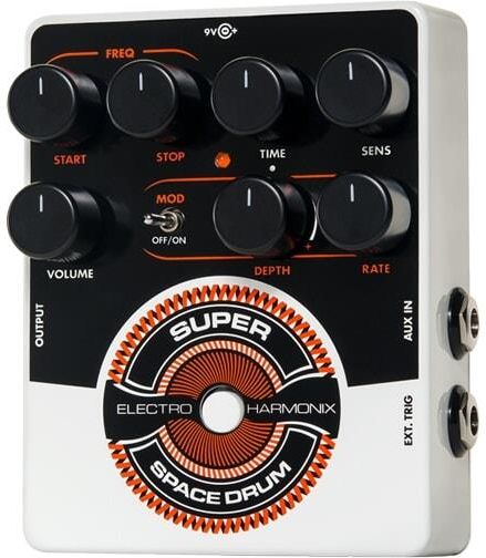Ciekawa odsłona tradycyjnego syntezatora perkusyjnego Electro-Harmonix z lat '80. Bardzo inspirujące urządzenie umożliwiające szerokie możliwości modulacji brzmień, doskonałe do elektronicznych stóp perkusyjnych czy werbli Kontrola: Start, Stop, Time, Sens, Depth, Rate, Volume Dwu pozycyjny przełącznik trybu MOD Wejście: 1 x Aux In, 1 x Ext Trig Wyjście: 1 x Output Wymiary: 102 x 121 x 89 mm Zasilanie: 9 V