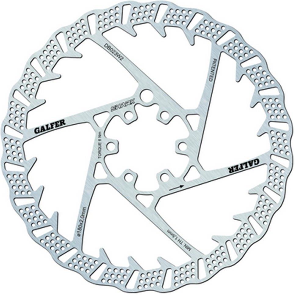 Tarcza hamulcowa Galfer Disc Shark to solidnie wykonany element wyposażenia. Konstrukcja zapewnia optymalną siłę hamowania również przy wysokiej temperaturze. Ponadto wydłuża trwałość klocków hamulcowych. To świetny wybór zarówno dla miłośników jazdy szosowej, jak i terenowej. Najważniejsze cechy Solidna konstrukcja Tarcza wyróżnia się bardzo wysoką jakością wykonania. Doświadczony producent postawił na stal nierdzewną, co gwarantuje trwałość oraz odporność przeciwko różnego rodzaju uszkodzeniom. Ponadto konstrukcja jest zabezpieczona przed korozją. Podróżuj bezpiecznie Ten model umożliwia efektywne wytracanie prędkości, co przekłada się na bezpieczne, a zarazem wydajne pedałowanie również przy wysokich temperaturach. Teraz stawisz czoła nawet najtrudniejszym trasom i bezpiecznie dotrzesz do celu. Zadbaj o klocki hamulcowe Tarcza pozwala obniżyć temperaturę podczas hamowania, co wpływa na wydajność i zwiększa trwałość klocków hamulcowych. Jeśli szukasz akcesoriów pierwszorzędnej jakości, ta propozycja jest właśnie dla Ciebie. Uniwersalne rozwiązanie Ta lekka i niezawodna konstrukcja znajdzie zastosowanie w wielu rowerach. Mowa tu o szosówkach, gravelach, MTB, a także modelach elektrycznych. Ponadto jest dostępna w kilku wersjach, więc możesz wybrać zarówno grubość, jak i rozmiar.