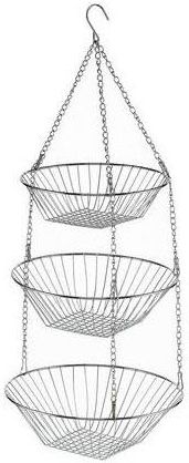 Kela - potrójny kosz do zawieszenia, śred. 30 x 73 cm Loop Potrójny kosz do zawieszenia - doskonale pomieści i zaprezentuje duże owoce - misy są sczepione z wiszącym stelażem za pomocą karabiczyków, które ułatwiają rozmontowanie kosza i jego wyczyszczenie - zajmuje mniej miejsca przy jednoczesnym zwiększeniu powierzchni do przechowywania Wymiary: - wysokość 73 cm - średnica - kosz dolny 30 cm - kosz środkowy 28 cm - kosz górny 25 cm Materiał: - metal chromowany