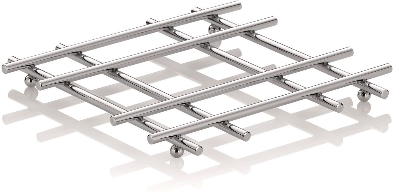 Kwadratowa podstawka do stawiania garnków, patelni i zapiekanek na stole lub w kuchniMa wysokiej jakości wykończenie i zapewnia bezpieczną powierzchnię do gotowania i pieczenia gorących patelni, które właśnie wyszły z piekarnika lub płyty grzejnejChromowana metalowa siatka nie tylko wygląda …