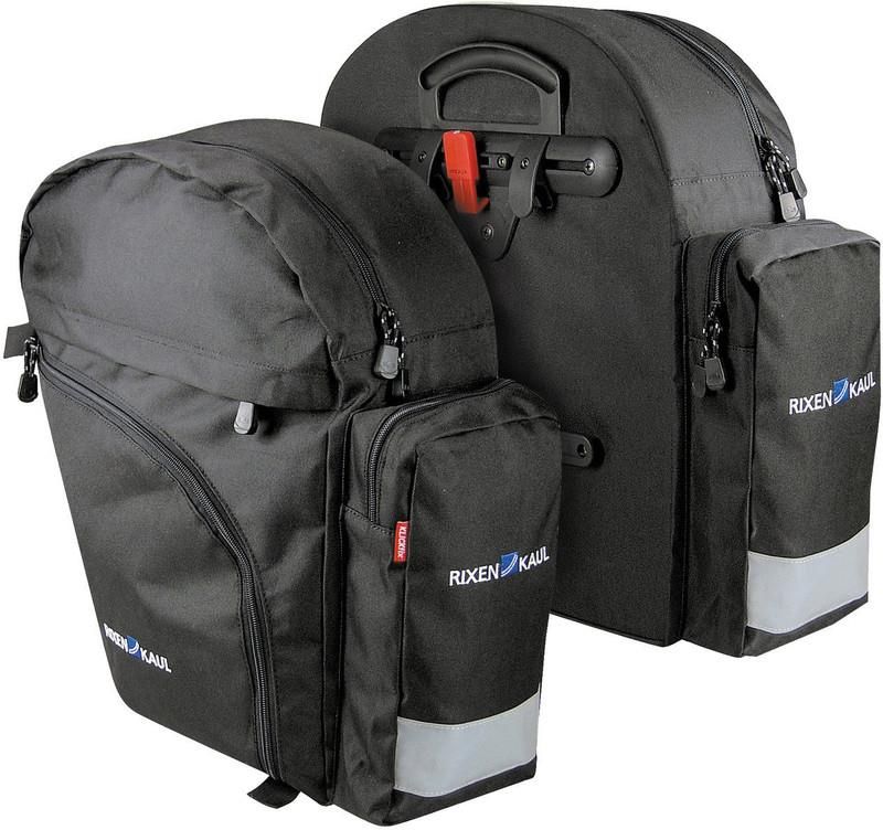 Główne informacje: Rodzaj / Przeznaczenie: Sakwy na bagażnik; Zastosowanie: uniwersalne; Rozmiar: Objętość całkowita: 21 l; Wymiary (dł. x szer. x wys.): 40 x 38 x 14; Waga: 900 g; Opcje montażu systemu: System hakowy; System zamykający: podwójny zamek błyskawiczny; Funkcja bezpieczeństwa: paski odblaskowe; Zakres dostawy: Dodatkowo osłona przeciwdeszczowa: tak; Zakres dostawy: 2 x torba na plecak KlickFix, 2 x szyna komfortowa KlickFix; Szczegóły: górny przedział i oddzielny, otwierany z boku przedział główny, Zewnętrzne kieszenie z dużymi paskami odblaskowymi
